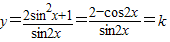 【答案】分析:先根据二倍角公式对函数进行化简,然后取点A(0,2),B(-sin2x,cos2x)且在x2+y2=1的左半圆上,将问题转化为求斜率的变化的最小值问题,进而看解.