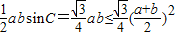(2)利用3ab=25-c2,由余弦定理:c2=a2+b2-2abcosC,25-3ab=a2+b2-ab,求出(a+b)2=5,利用基本不等式求解面积的最大值.