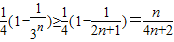 另一方面3n=(1+2)n=1+Cn1×2+Cn2×22++Cnn×2n≥1+2n,