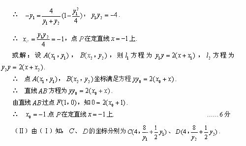 (Ⅱ)设C、D为直线l1、l2与直线x = 4的交点,求