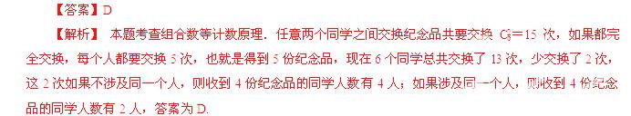 )6位同学在毕业聚会活动中进行纪念品的交换,任意两位同学之间最多交换一次,进行交换的两位同学互赠一份纪念品.已知6位同学之间共进行了13次交换,则收到4份纪念品的同学人数为( )