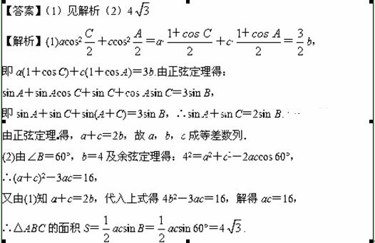 (2)若∠B=60°,b=4,求△ABC的面积.