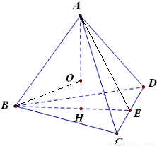 【答案】分析:设O为四面体ABCD外接球的球心,过A作AH⊥BCD于H,则O在AH上,延长BH交BC于E,连接OB、AE.可算出四面体的高AH=