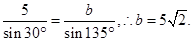 在△ABC中,B=135°,C=15°,a=5,则此三角形的最大边长为 .