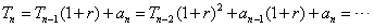 某国采用养老储备金制度,公民在就业的第一年就交纳养老储备金,数目为a1,以后每年交纳的数目均比上一年增加d(d>0),因此,历年所交纳的储务金数目a1,a2,…是一个公差为d的等差数列,与此同时,国家给予优惠的计息政策,不仅采用固定利率,而且计算复利。这就是说,如果固定年利率为r(r>0),那么,在第n年末,第一年所交纳的储备金就变为a1(1+r)a-1,第二年所交纳的储备金就变为a2(1+r)a-2,……,以Tn表示到第n年末所累计的储备金总额。