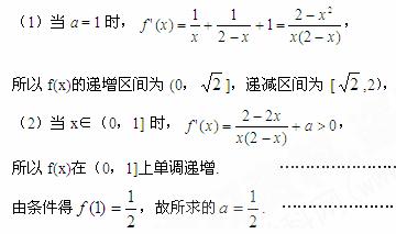 设函数f(x) = lnx +ln(2-x)+ ax (a>0).