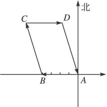 某人从点A出发向西走400 m到达点B,然后改变方向朝西北方向走600 m到达点C.最后又向东走400 m到达点D.(1)按1∶10 000的比例作出向量