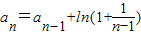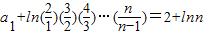 在数列{an}中,a1=2,A.2+lnn