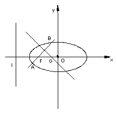 (II)设过点F的直线交椭圆于A、B两点,并且线段AB的中点在直线