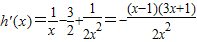 当0<x<1时,h′(x)>0;当x>1时,h′(x)<0