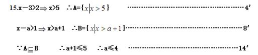 (本题满分14分)集合A={>1},B={>2},AB,求a的取值范围。
