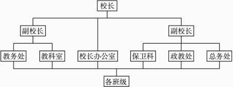 某中学行政机构关系如下:校长下设两名副校长和校长办公室,两名副校长又各自管理教务处、教科室,保卫科、政教处、总务处.各科室共同管理和服务各班级.试画出该校的行政组织结构图.
