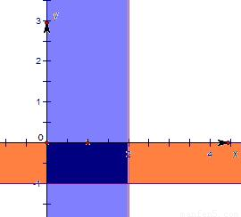 解:∵集合A={(x,y)|0≤x≤2}表示图中竖直的条形区域,B={(x,y)|-1≤y≤0}表示图中横放着的条形区域,