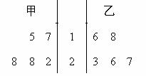 甲、乙两名运动员的5次测试成绩如下图所示,设分别表示甲、乙两名运动员测试成绩的标准差,分别表示甲、乙两名运动员测试成绩的平均数,则有 ( )