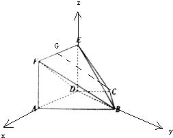 ∵平面DBE的法向量为$\overrightarrow{DA}$=(1,0,0)