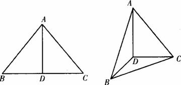 答案:A 【解析】本题考查图形的折叠、二面角的平面角以及球的内接长方体的性质等知识.如图所示,在正三角形ABC中AD⊥BC,所以可得折叠图形中,有AD⊥DC,AD⊥DB,则∠BDC为直二面角B-AD-C的平面角.所以∠BDC=90°.由于三棱锥B-ACD内接于球,所以以AD、BD、CD为三条棱补成一个长方体,则这个长方体也内接于此球.那么球的直径就是长方体的体对角线.于是有2R=l=![]()