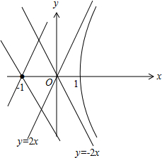 解答 解:由2x=$\sqrt{4+{y}^{2}}$,得${x}^{2}-\frac{{y}^{2}}{4}=1(x≥1)$,