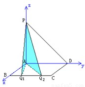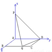 【答案】分析:建立如图所示的空间直角坐标系,则各点坐标分别为:A(0,0,0,),B(a,0,0),C(a,2,0),D(0,2,0),P(0,0,2),设Q(a,x,0).(0≤x≤2)