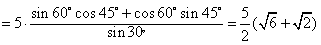 在△ABC中,a=5,B=45°,C=105°,求边c。
