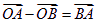 起点相同的向量相减,则取终点,并指向被减向量,
