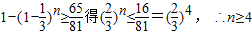 ,求出n的范围,找最小的整数n即可.