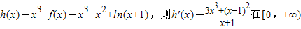 (Ⅲ)先构造函数h(x)=x3-x2+ln(x+1),然后研究h(x)在[0,+∞)上的单调性,求出函数h(x)的最小值,从而得到ln(x+1)>x2-x3,最后令
