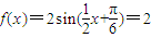 【答案】分析:(1)根据图象求出A,T,求出ω,图象经过(0,1),求出φ,然后求f(x)的解析式,根据(x,2)求x的值;