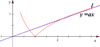 设直线l与f(x)=|lnx|相切,如图,设切点为(x,lnx),
