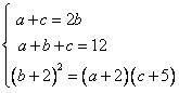已知三个实数a、b、c成等差数列且它们的和为12,又a+2、b+2、c+5成等比数列,求出这三个实数a、b、c。