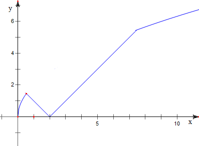 作函数y=min$\left\{{2\sqrt{x},|{x-2}|}\right\}$的图象如下,![]()