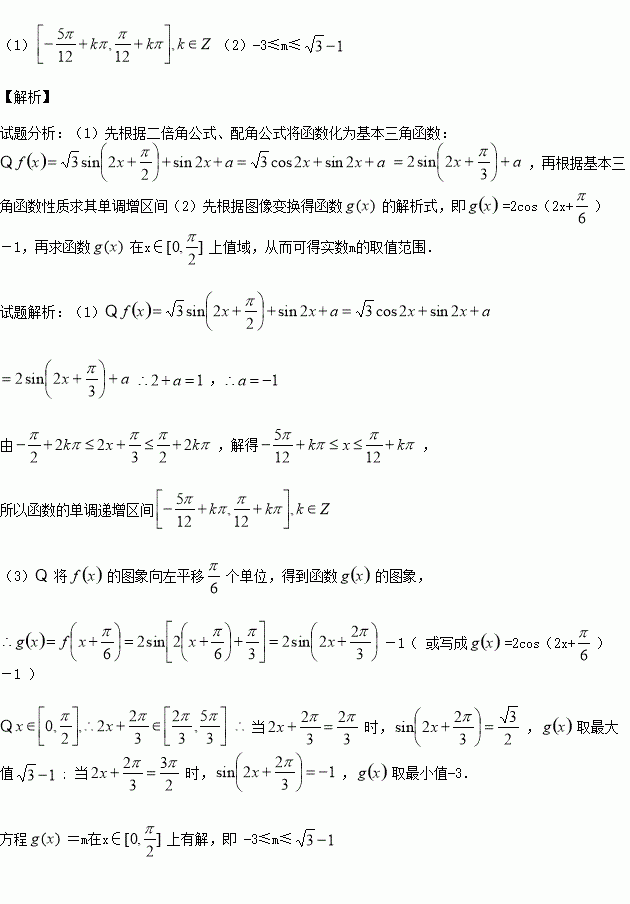 (2)将的图象向左平移个单位,得到函数的图象,若方程=m在x∈上