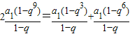 由S3,S9,S6成等差数列,知q≠1,且2S9=S3+S6,