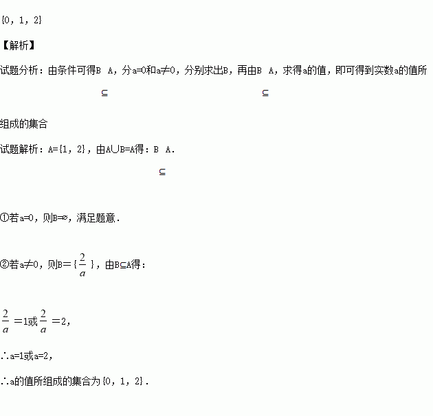 已知集合A={x|x2-3x+2=0},B={x|ax-2=0},若A∪B=A,求实数a的值所组成的集合.