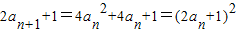 ∴{2an+1}是“平方递推数列”. …(4分)