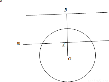 直线n与圆恰好有1个公共点,此时d=OB=2+1=3,当直线介于m、n之间满足题意.