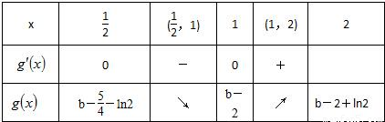 ③【0.5,2]上有两根则f(x)两次穿过x轴:g(0.5)≥0,g(1)<0,g(2)≥0可解b范围(III)由(I)和(II)可知a=0,x∈[0.5,+∞) f(x)≥f(1),即lnx≤x-1