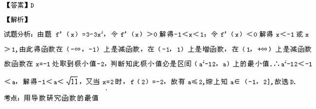 函数上有最小值,实数a的取值范围是( )