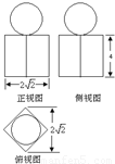 解答:解:由三视图可知,几何体是底部是一底面对角线长为