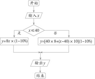 否则,y=40×8(1-10%)+(x-40)×10(1-10%).