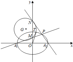 (2)已知椭圆C的短轴长为2,A1,A2为左右顶点,点P为椭圆C上异于A1,A2的一点,过,A1,A2的直线l1,l2交于点P,且与y轴分别交于点M,N,直线OT与过点M,N的圆G切于点T,确定点T的轨迹.