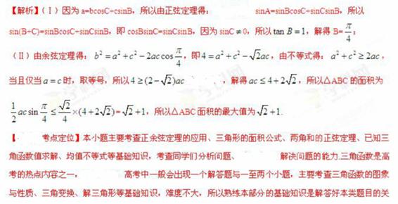 (Ⅱ)若b=2,求△ABC面积的最大值。