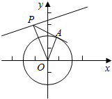 ∴OP=$\sqrt{10}$,切线PA=$\sqrt{O{P}^{2}-O{A}^{2}}$=$\sqrt{10-4}$=$\sqrt{6}$,