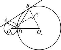 解析:如图,设⊙O1、⊙O2外切于点D,公切线AB的切点为A、B,过点O1作O1C⊥O2B于C,则∠CO1O2=30°,O1O2=4,O2C=2,O1C=2