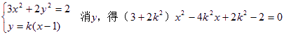 相交,试确定弦AB所在直线斜率k的取值范围。