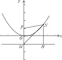 解:由题意可得F(0,1),M(0,-1),过点N作NH垂直于准线y=-1,垂足为H,