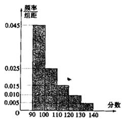 (文)某市高三数学抽样考试中,对90分以上(含90分)的成绩进行统计,其频率分布图如图所示,若130—140分数段的人数为90人,则90—100分数段的人数为__________.![]()
