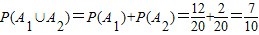 则A1与A2互斥,并且A1∪A2表示事件“连续抽取2张卡片,取出的2人不全是男生”,