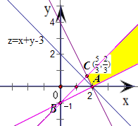 点评:本题给出二元一次不等式组,求目标函数z=x+y-3的最小值,着重考查了二元一次不等式组表示的平面区域和简单的线性规划等知识,属于基础题.
