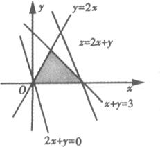 由于直线z=y+2x的斜率小于直线x+y=3的斜率,故将直线y+2x=0平移至点(3,0)时,直线z=y+2x在y轴截距最大,此时zmax=2×3+0=6.