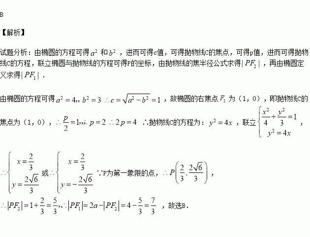 已知抛物线的顶点是椭圆的中心,焦点与该椭圆的右焦点重合,若抛物线与该椭圆在第一象限的交点为,椭圆的左焦点为,则( )
